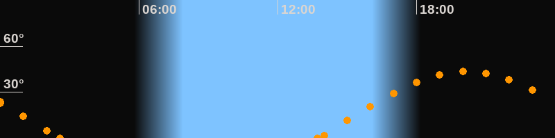 Höchster Stand (Kulmination)20:07 Uhr (h = 43.7°)