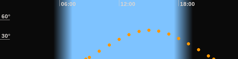 Höchster Stand (Kulmination)15:06 Uhr (h = 44.3°)