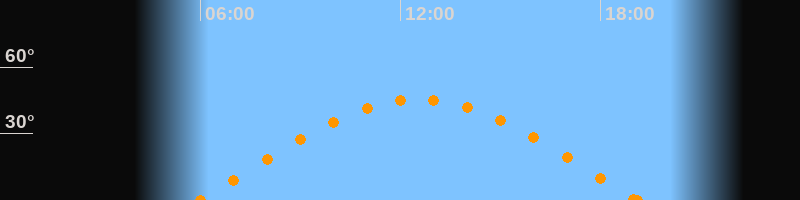 Aufgang06:00 Uhr im Osten (αAz = 79.6°)