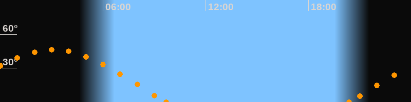 Höchster Stand (Kulmination)03:04 Uhr (h = 46.4°)