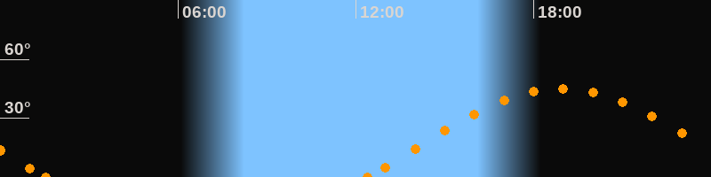Höchster Stand (Kulmination)18:56 Uhr (h = 45.2°)