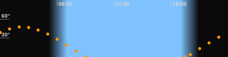 Höchster Stand (Kulmination)02:20 Uhr (h = 47.7°)