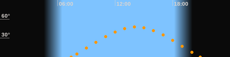 Höchster Stand (Kulmination)14:09 Uhr (h = 47.6°)