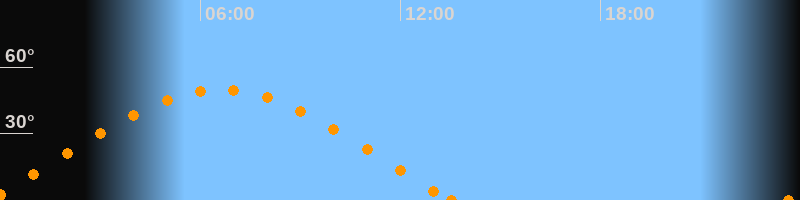 Höchster Stand (Kulmination)06:36 Uhr (h = 49.7°)