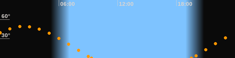 Höchster Stand (Kulmination)02:28 Uhr (h = 49.3°)