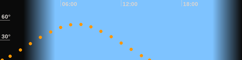 Aufgang00:12 Uhr im Nordosten (αAz = 65.9°)