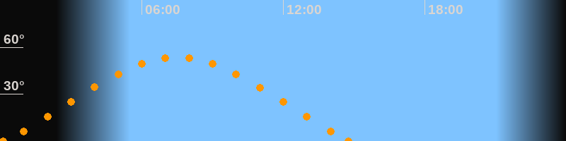 Aufgang00:08 Uhr im Nordosten (αAz = 65.9°)