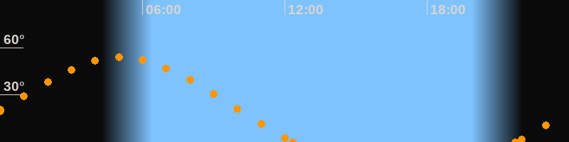 Aufgang21:43 Uhr im Nordosten (αAz = 65.9°)