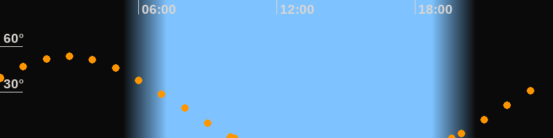 Höchster Stand (Kulmination)02:55 Uhr (h = 53.6°)