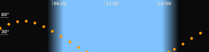 Höchster Stand (Kulmination)02:43 Uhr (h = 53.5°)
