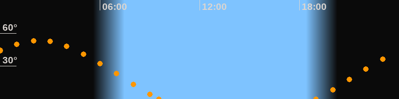 Höchster Stand (Kulmination)02:18 Uhr (h = 53.5°)