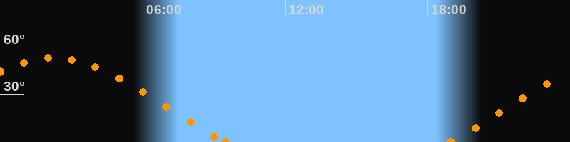 Höchster Stand (Kulmination)02:14 Uhr (h = 53.5°)