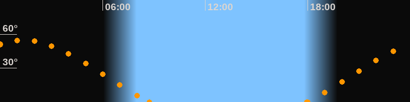 Höchster Stand (Kulmination)01:18 Uhr (h = 54.6°)