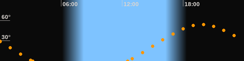 Höchster Stand (Kulmination)19:50 Uhr (h = 54°)