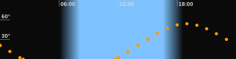 Höchster Stand (Kulmination)18:59 Uhr (h = 54°)