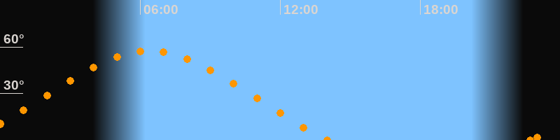 Höchster Stand (Kulmination)06:23 Uhr (h = 57.5°)