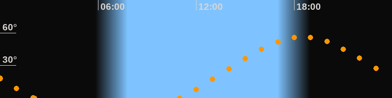 Höchster Stand (Kulmination)18:30 Uhr (h = 56.5°)