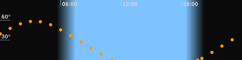 Höchster Stand (Kulmination)03:22 Uhr (h = 58.4°)