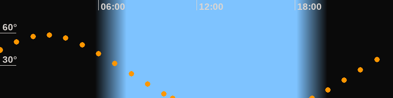 Höchster Stand (Kulmination)02:49 Uhr (h = 58.3°)