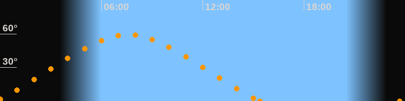 Höchster Stand (Kulmination)07:34 Uhr (h = 59.4°)