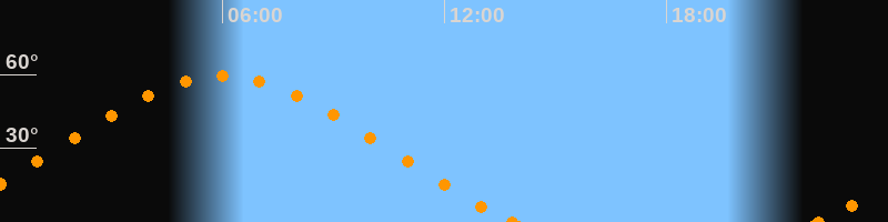 Höchster Stand (Kulmination)06:00 Uhr (h = 59.5°)