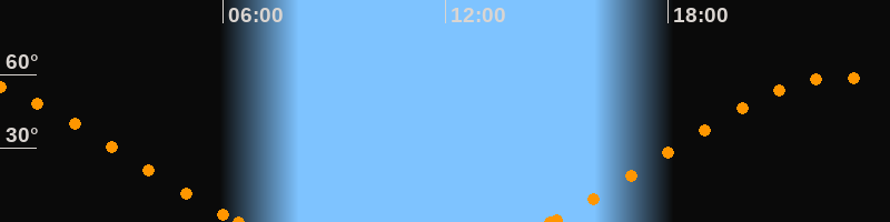 Höchster Stand (Kulmination)22:35 Uhr (h = 58.9°)