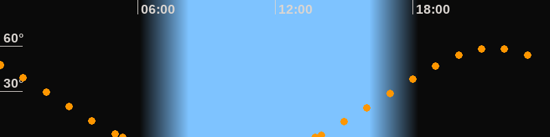 Höchster Stand (Kulmination)21:30 Uhr (h = 58.8°)