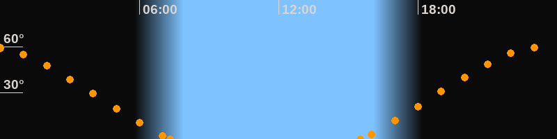 Höchster Stand (Kulmination)23:23 Uhr (h = 59.9°)