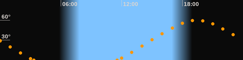 Höchster Stand (Kulmination)19:24 Uhr (h = 59.6°)