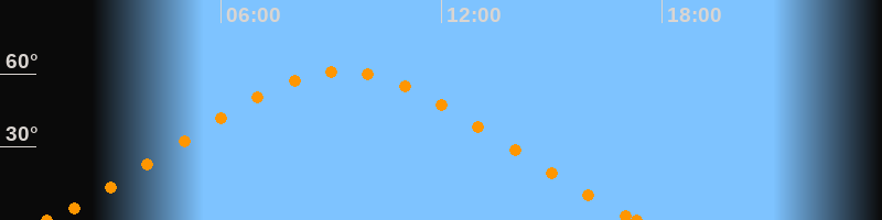 Höchster Stand (Kulmination)09:19 Uhr (h = 60.9°)
