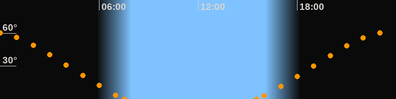 Höchster Stand (Kulmination)23:30 Uhr (h = 60.7°)