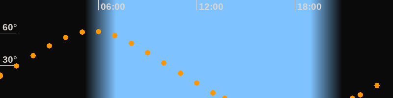 Höchster Stand (Kulmination)05:38 Uhr (h = 61.7°)