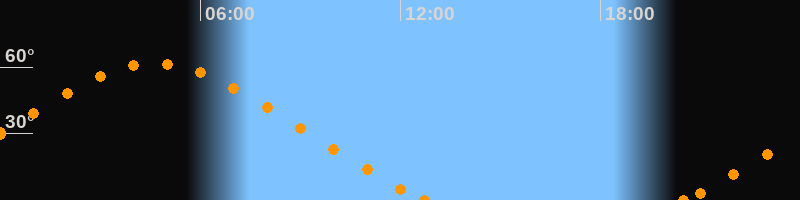 Höchster Stand (Kulmination)04:38 Uhr (h = 61.7°)