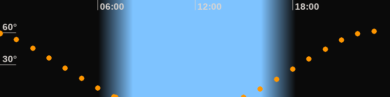 Höchster Stand (Kulmination)23:01 Uhr (h = 61.4°)