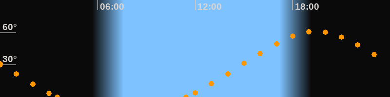 Höchster Stand (Kulmination)19:26 Uhr (h = 61.2°)