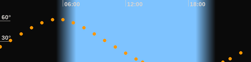 Höchster Stand (Kulmination)05:30 Uhr (h = 62.2°)