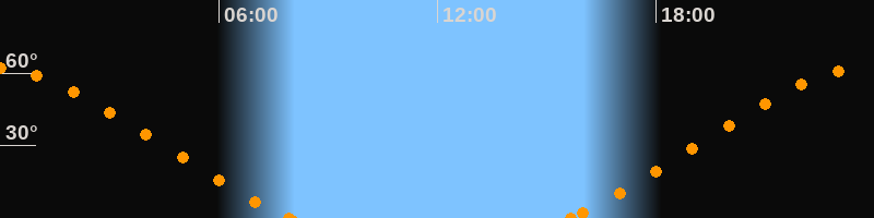 Höchster Stand (Kulmination)23:45 Uhr (h = 62°)