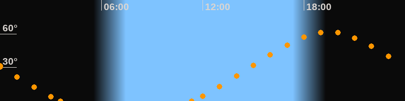 Höchster Stand (Kulmination)19:26 Uhr (h = 61.8°)