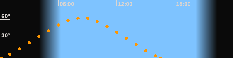 Höchster Stand (Kulmination)08:21 Uhr (h = 62.5°)