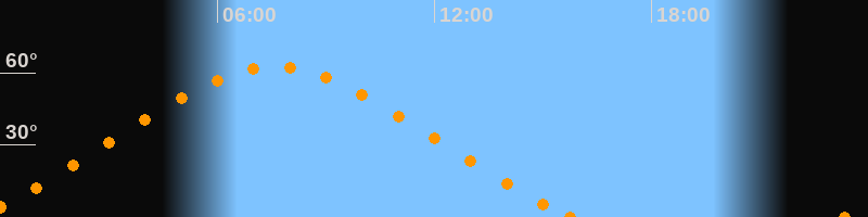 Höchster Stand (Kulmination)07:35 Uhr (h = 62.6°)