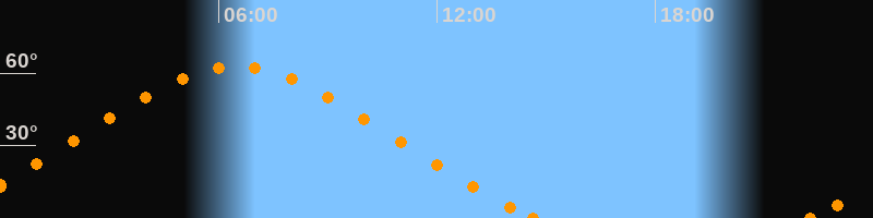 Höchster Stand (Kulmination)06:29 Uhr (h = 62.6°)