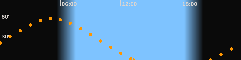 Höchster Stand (Kulmination)05:10 Uhr (h = 62.6°)