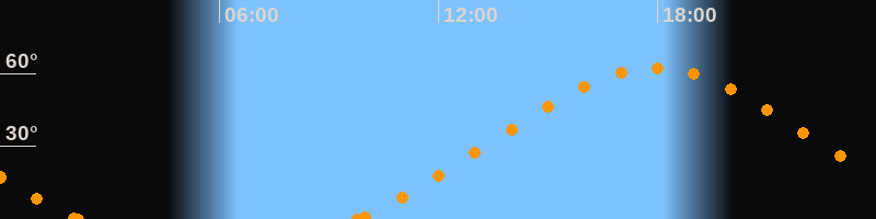 Höchster Stand (Kulmination)17:56 Uhr (h = 62.3°)