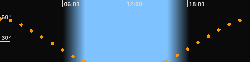 Höchster Stand (Kulmination)23:53 Uhr (h = 62.8°)