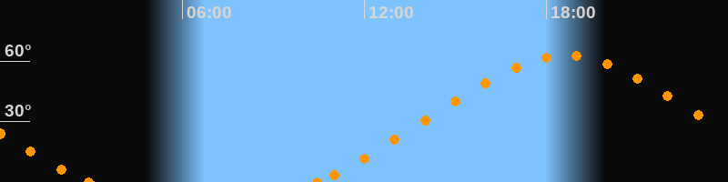 Höchster Stand (Kulmination)18:39 Uhr (h = 62.7°)
