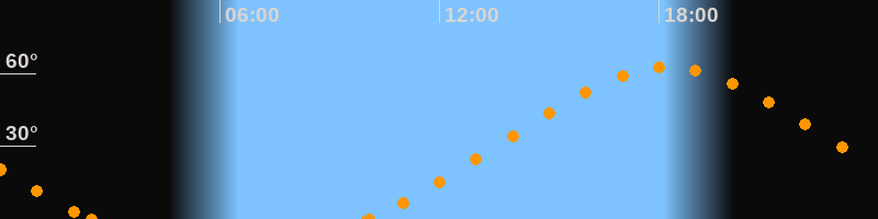 Höchster Stand (Kulmination)18:15 Uhr (h = 62.7°)