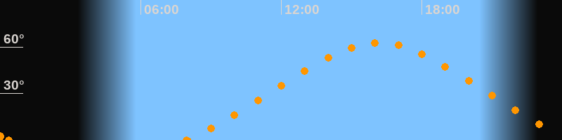 Höchster Stand (Kulmination)16:09 Uhr (h = 62.8°)