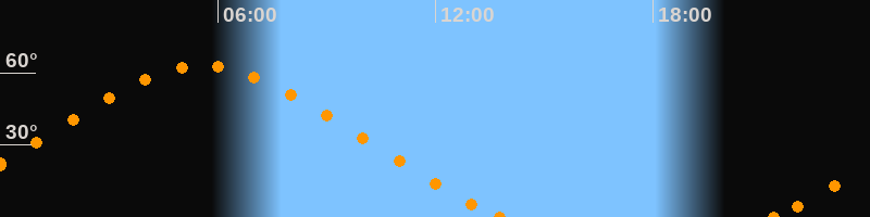 Höchster Stand (Kulmination)05:35 Uhr (h = 62.8°)