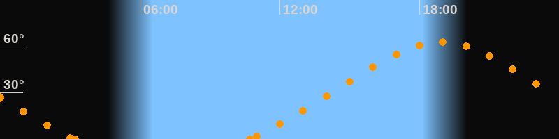 Höchster Stand (Kulmination)18:55 Uhr (h = 63°)