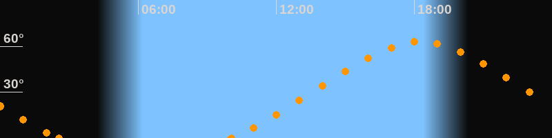 Höchster Stand (Kulmination)18:16 Uhr (h = 63°)